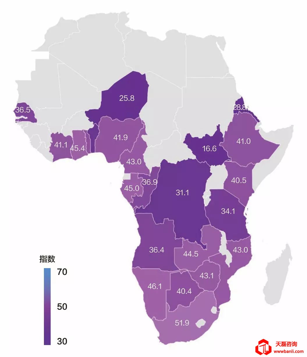 ⬆ 图8 撒哈拉以南非洲各国GEIDI分布图